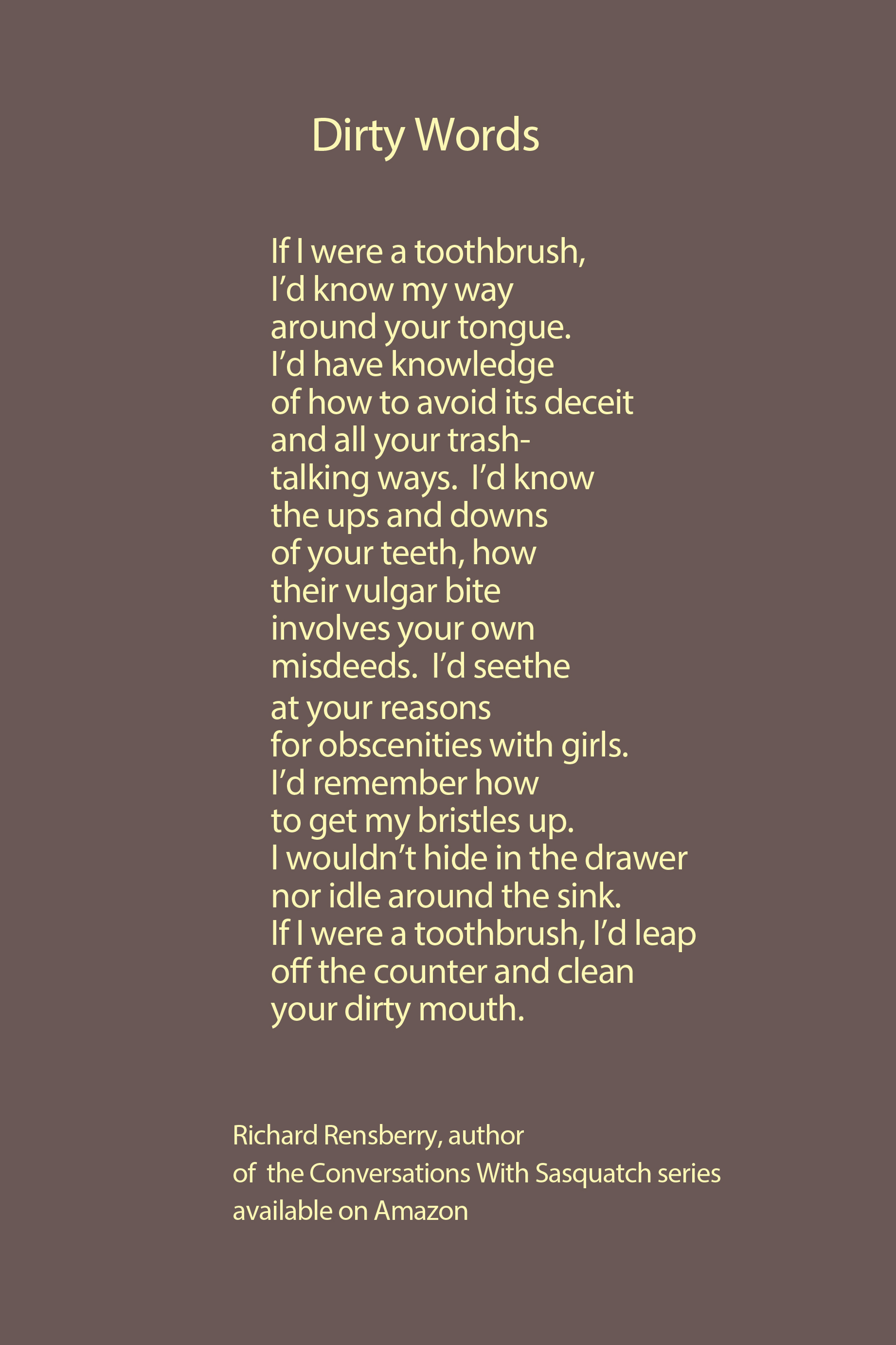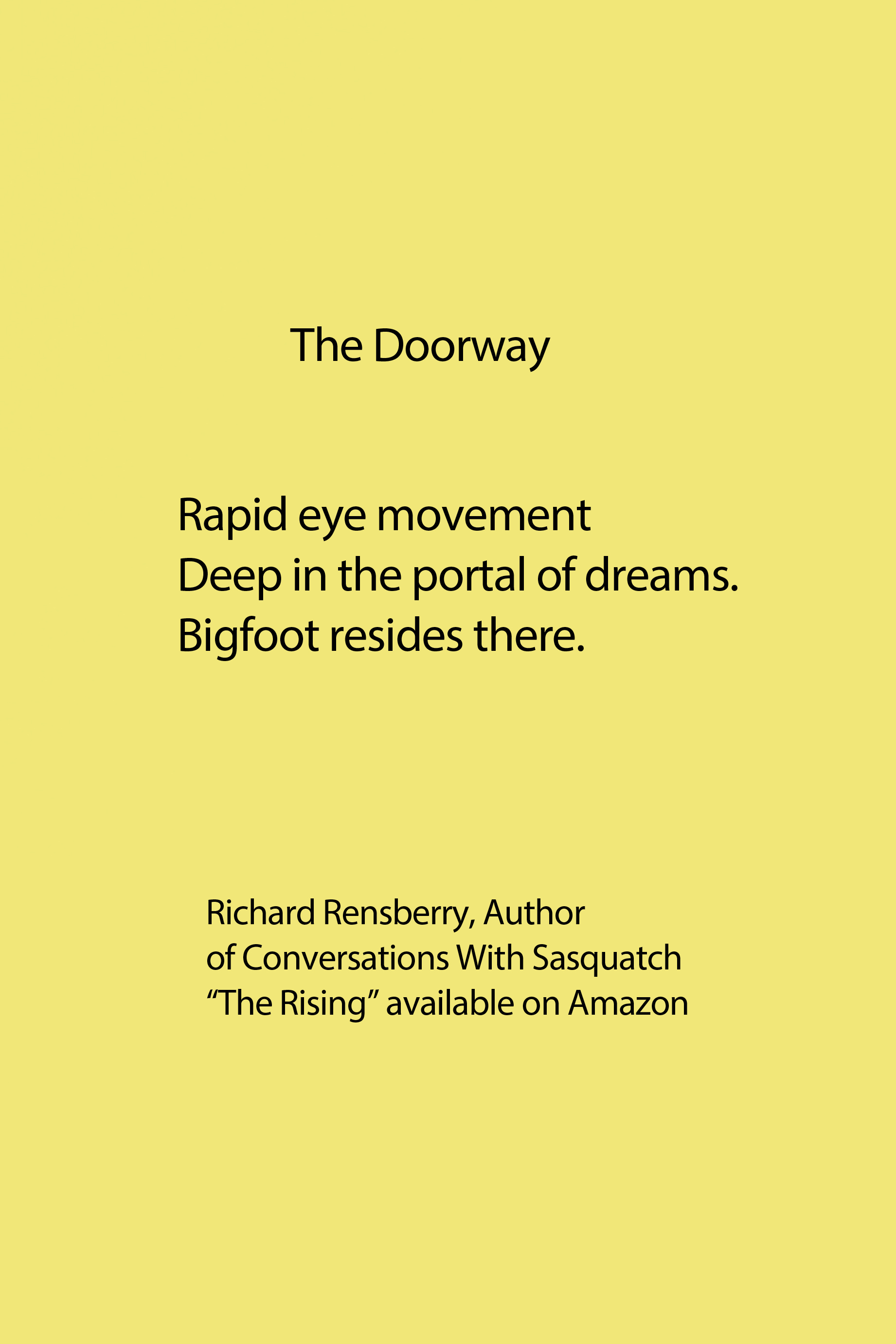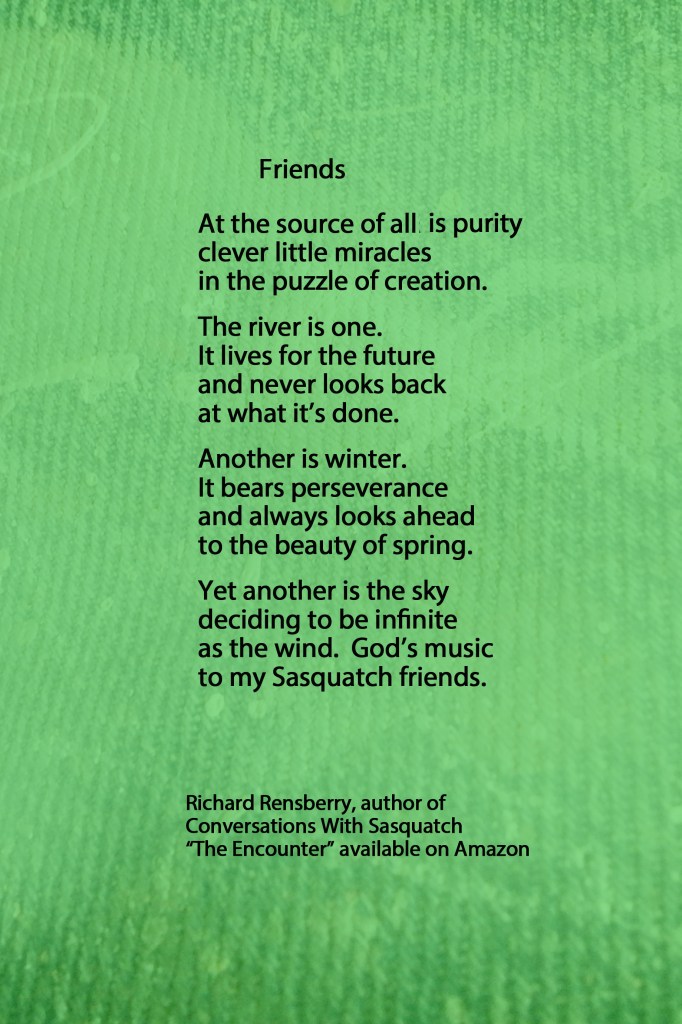 Richard Rensberry, Author of Conversations With Sasquatch, The Encounter eBook for free on Amazon for 5 days beginning 12/20 and lasting through 12/25. MERRY CHRISTMAS!