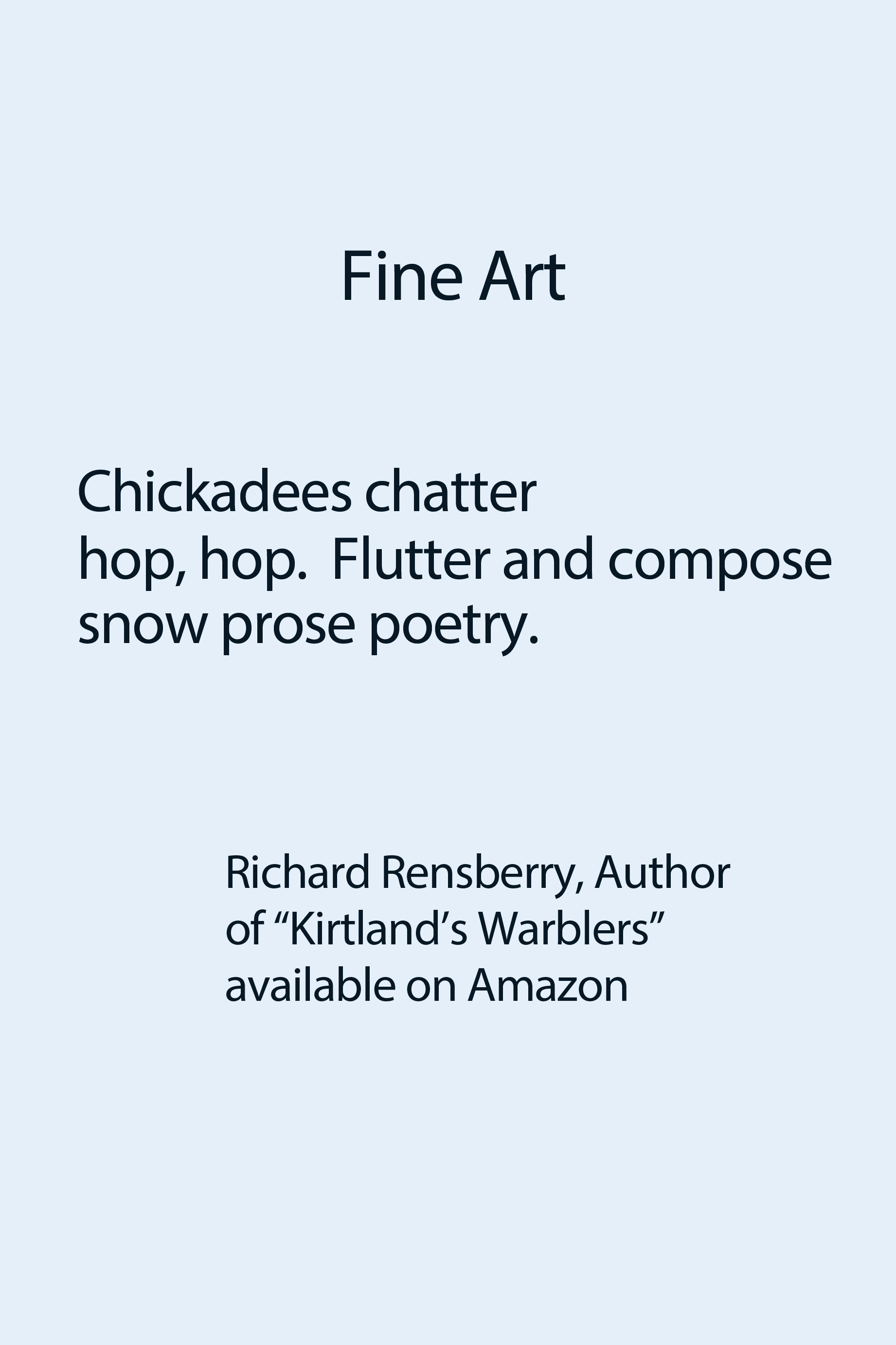 *************************************************************************************************************Richard Rensberry, Author of “Kirtland’s Warblers” children’s book, a rhyme for young readers available in paperback on Amazon.