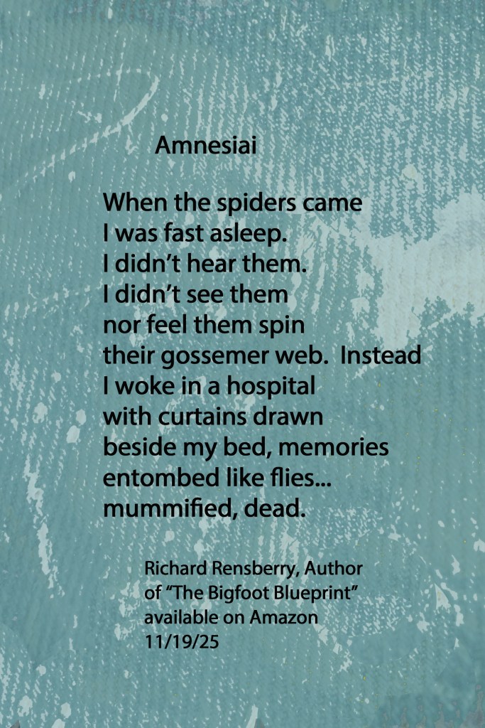 A darkness crept stealthily over the ridge. Lightning flashed and a huge clap of thunder reverberated off and rattled my teeth. I began to shiver uncontrollably as Sasquatch melted into the rain with a welcoming gesture meant for me to follow him there to wherever there was going to be.